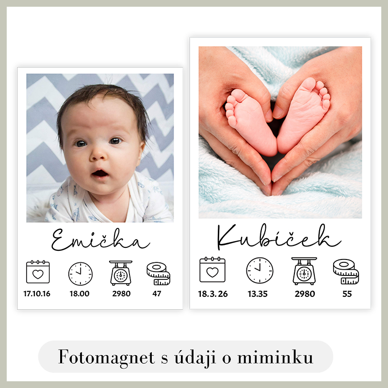 Nabízíme magnetky na lednici s vlastní fotografií, údaji o narození miminka,